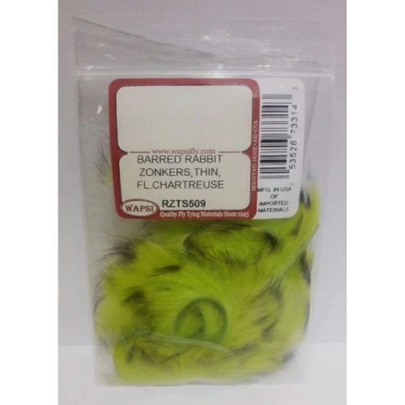 Estas tiras de conejo barradas cortadas finas, son perfectas para realizar alas y partes de pequeños streamers, pinzas de cangrejos, etc..