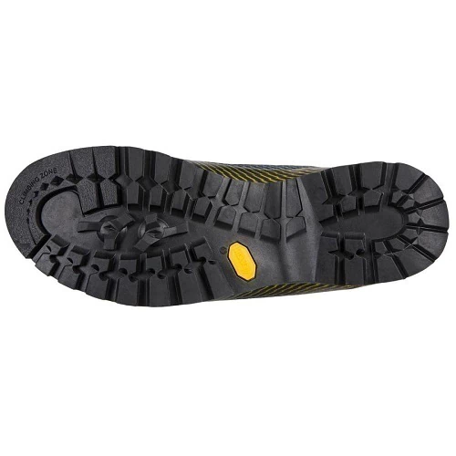 El cordón diferenciado, permite un ajuste de volumen perfecto mientras que la suela Vibram® con zona Climbing en la puntera permite el uso en vía ferrata. Look Trango, suela Vibram® y tecnología La Sportiva para comodidad, protección y seguridad en la montaña.