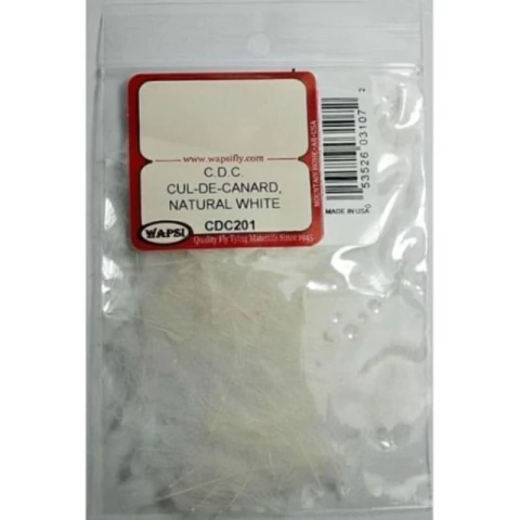 El CDC es uno de esos super materiales, que hemos descubierto no hace tanto. Son plumas que crecen cerca de la glándula de los patos. Sus principales cualidades son la impermeabilización natural dada por su estructura, la capacidad de atrapar aire, y el increíblemente realismo con el que pueden copiar alas o partes de insectos. Las plumas de los CDC son excelentes para atar moscas secas o emergentes de todo tipo.