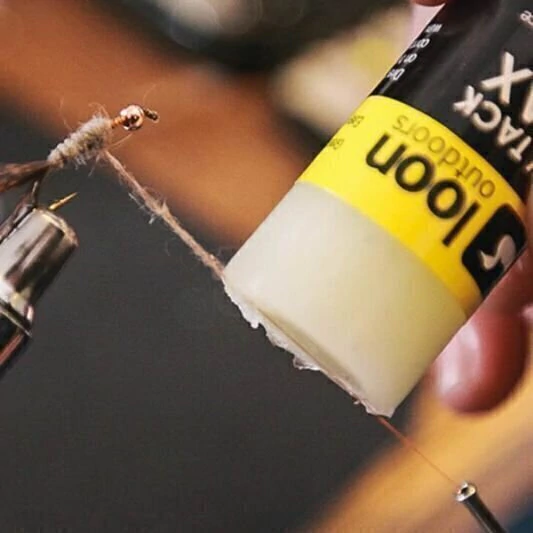 La cera para dubbing Low Tack de Loon es menos pegajosa para agregar cantidades sutiles de dubbing a nuestras moscas.