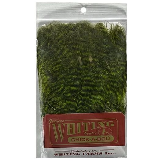 El Chick-a-Bou es uno de los productos más versátiles que produce Whiting Farms. Las plumas tipo marabú o marabou barrado del parche Chick-a-Bou son suaves, delicadas y poseen un movimiento único, son perfectas para atar pequeñas ninfas, branquias, colas de buggers, damsels y más.