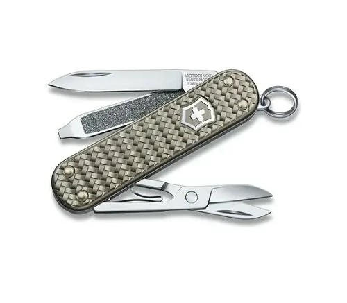 Con un patrón tramado que agrega textura y un estilo contemporáneo, esta navaja de bolsillo se ofrece en una selección de excepcionales y elegantes colores como Brass Gold e Infinite Grey. Con cinco útiles funciones, esta es una navaja que permite trabajar duro, pero que tiene apariencia elegante y siempre está a la moda.