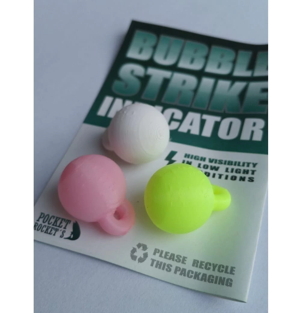El Indicador de pique Buble es un ingenioso y sutil indicador de pique conformado por un polimero de alta flotación con un pequeño orificio en la parte superior.El resultado final es un indicador increíblemente sensible y el mas simple de tirar que se adhiere al leader cónico y permanece en su lugar.Cada paquete contiene 3 unidades.