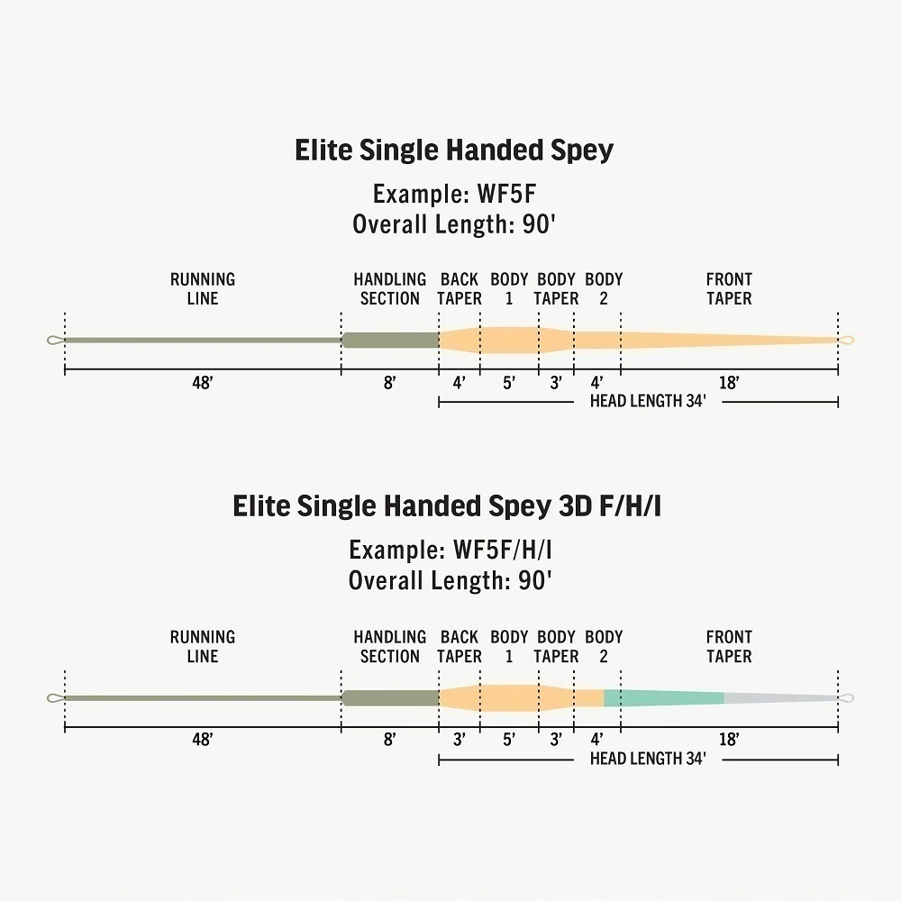 Hay 2 líneas de densidad diferentes para cubrir cada situación de pesca, una línea flotante completa (F), para pescar en la superficie, y una línea flotante con 10 pies de línea de hundimiento "Hover", luego 10 pies de línea de hundimiento intermedia en la parte delantera (F / H / I), para pescar en los 2-4 pies debajo de la superficie.