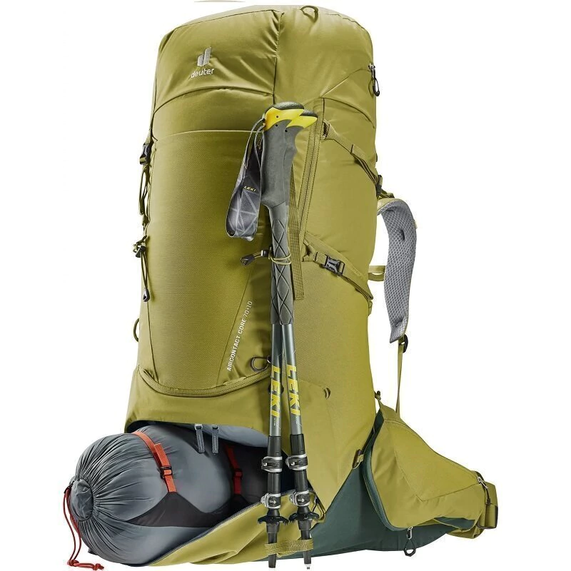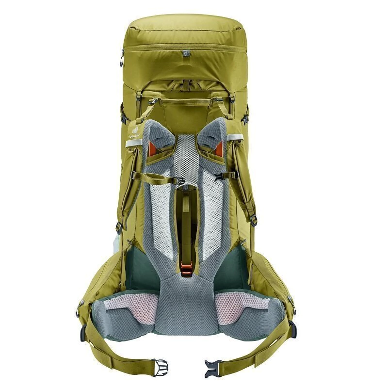 Su comodidad de transporte superior se debe al sistema de espalda Aircontact de Deuter con malla Air Spacer y un gran canal de ventilación, además de correas de hombro ergonómicas ActiveFit y una correa de esternón ajustable. El marco en forma de Y, las aletas móviles de la cadera y la almohadilla lumbar ergonómica se combinan para distribuir la carga de manera efectiva. Una cremallera en forma de J de largo completo en la parte delantera hace que el contenido sea fácil de ubicar más abajo en el compartimento principal. Mientras que los grandes bolsillos desmontables para las aletas de la cadera (3 L) brindan almacenamiento adicional y mantienen los artículos al alcance. Una funda para botella de 1,5 litros con cremallera también te permite hidratarte mientras estás en movimiento.