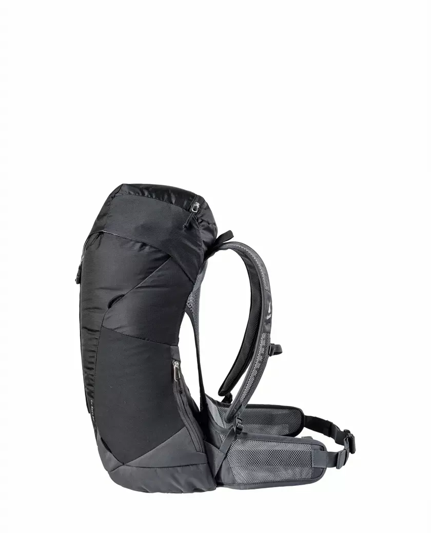 La mochila de senderismo es ahora aún más ligera y proporciona la máxima ventilación con el sistema de espalda Airconfort. Así equipado, este compañero compacto casi no se siente en el recorrido. El equipaje se puede empacar y desempacar convenientemente a través de la abertura del compartimiento de la tapa. El teléfono inteligente o los bocadillos se pueden guardar al alcance de la mano en el bolsillo lateral elástico y aireado. El casco se puede fijar con un portacascos adicional a los lazos en el exterior de la mochila.