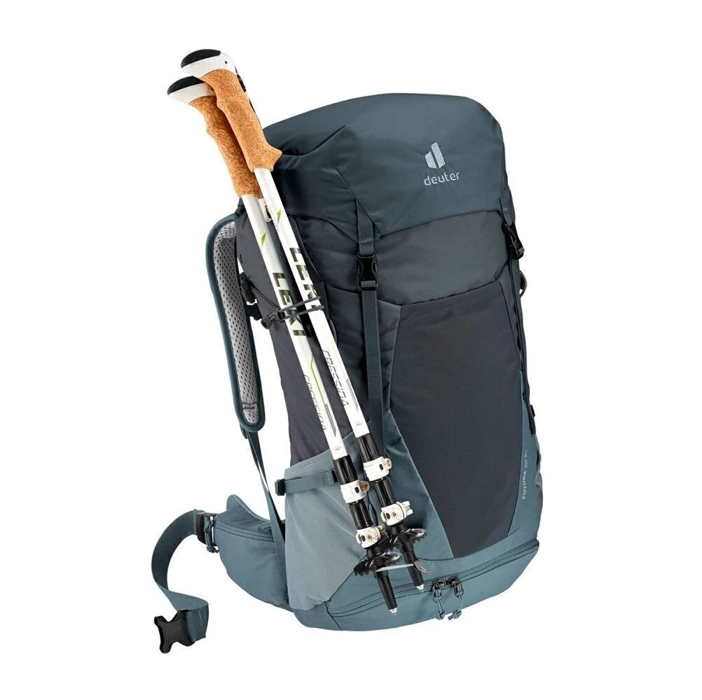 La mochila de senderismo es ahora aún más ligera y proporciona la máxima ventilación con el sistema de espalda Airconfort. Así equipado, este compañero compacto casi no se siente en el recorrido. El equipaje se puede empacar y desempacar convenientemente a través de la abertura del compartimiento de la tapa. El teléfono inteligente o los bocadillos se pueden guardar al alcance de la mano en el bolsillo lateral elástico y aireado. El casco se puede fijar con un portacascos adicional a los lazos en el exterior de la mochila.
