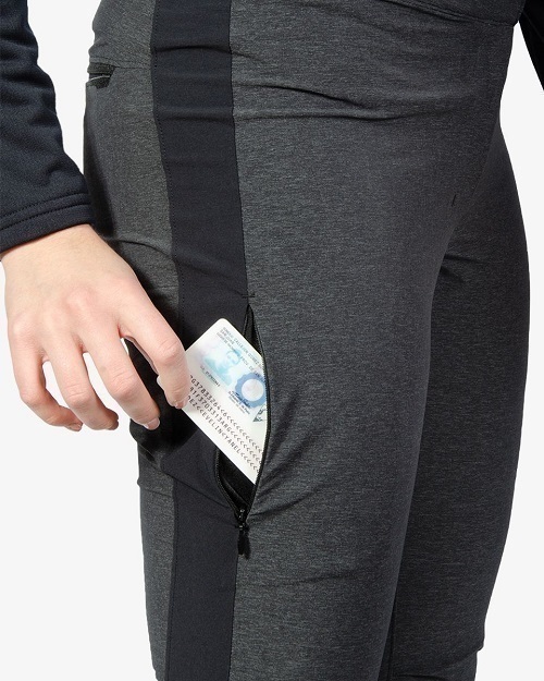 Bolsillo lateral con cierre pegado que permite volcar su bolsa hacia adelante o hacia atrás según la posición (en versión femenina el cierre está oculto)