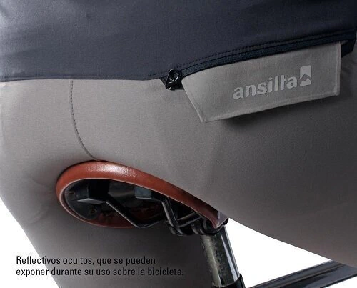 Dos bolsillos traseros con cierres pegados y detalles reflectivos ocultos, que se pueden exponer durante su uso sobre la bicicleta.
