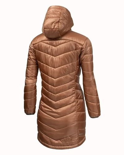 Tapado con capucha para damas, prenda urbana de excelente prestación. Calce ajustado, altamente confortable. Ultra liviana. Sumamente compactable gracias al abrigo interior de PRIMALOFT Silver y al tejido PERTEX Quantum.